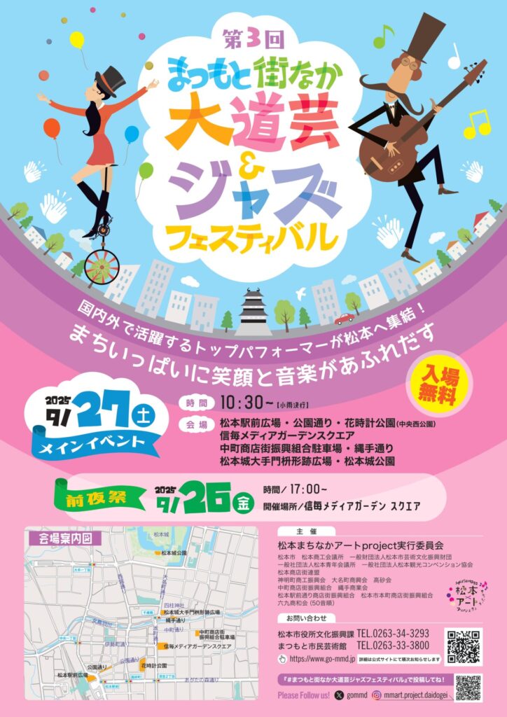 国内外で活躍する、大道芸&ジャズのトップパフォーマーが松本へやってきます!市内のさまざまな場所で多くの最高なパフォーマンスが行われます。ぜひ街なかへご来場ください!