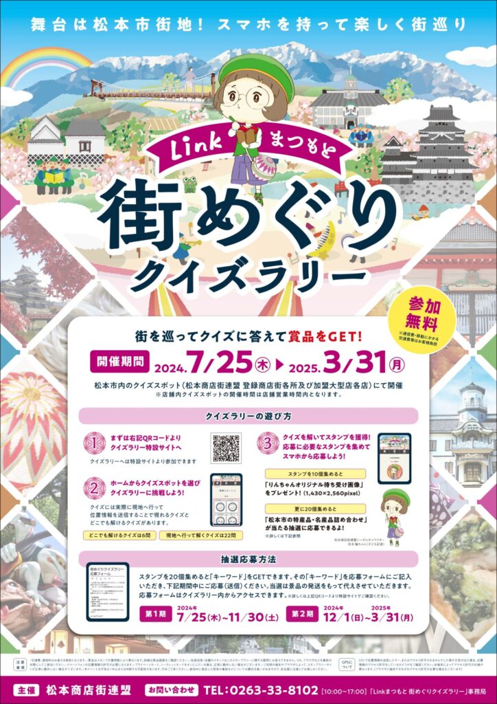 「Linkまつもと 街めぐりクイズラリー」事務局 0263-33-8102(平日10時~17時)