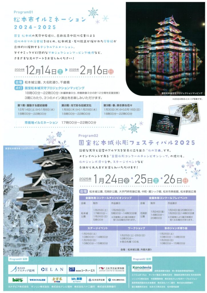 1月24日(金)、25日(土)、26日(日)は<国宝松本城氷彫フェスティバル2025>が開催されます。